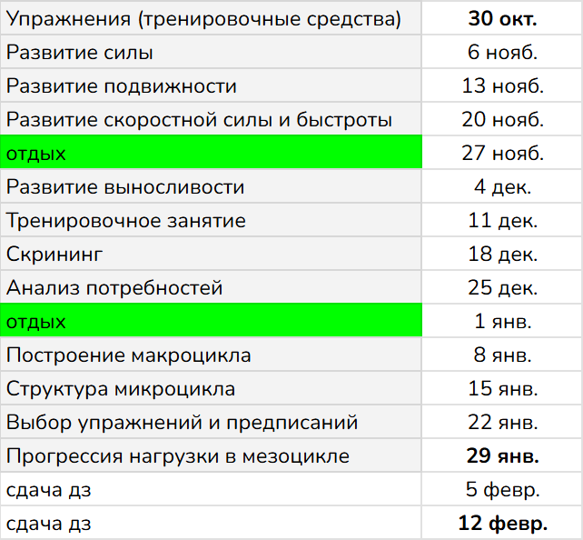 Раньше планирование тренировок казалось чем-то сложным и объемным. Но по ходу курса оно стало более понятным, и теперь нет страха браться за мезоциклы :)